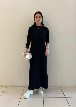 1サイズだと身体のラインを少し拾ったので2サイズを着用。トップスはユルっとしたクロップド丈、ワンピースはストンとした落ち感があります。