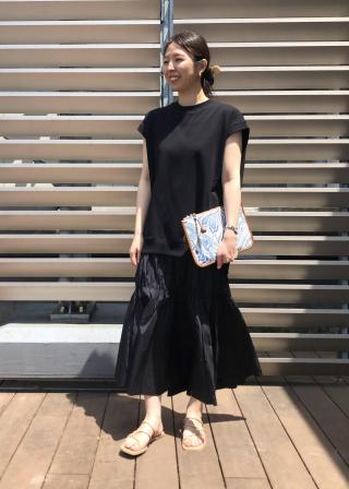 ノースリーブのチュニックカットソーとタフタのティアードスカートがドッキングされた、1枚でスタイリングが決まるカットワンピース。トップス部分はカジュアルでリラックス感がありつつ、エレガントな雰囲気のタフタスカートが付く事で、外しのスタイリングが完成され、華やかな印象に仕上がる一着。メタルファスナーと長く垂らしたグログランテープで、後ろ姿が映えるのも嬉しいポイント。