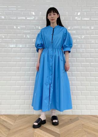 スカート部分にギャザーをたっぷりと入れて華やかに仕上げた、バンドカラーのロングワンピ—ス。ギャザースリーブが甘くなりすぎないよう、袖下にスリットを入れて大人っぽく仕上げており、ストレスフリーな軽い着心地や、サイドに付いたドロスト仕様でシルエットに変化を加えられるのも嬉しい一着。フロントに取り入れたアウターのようなディテールや、肩ヨークもデザインポイント。