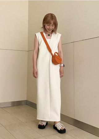 さらりと一枚での着用はもちろん、カーディガンやシアーシャツを羽織ったり、インナーにシアートップスを重ねたりもセンシュアルな雰囲気がありおすすめ。インナーで遊んだレイヤードもぜひ。足元は、フラットサンダルでヘルシーに、スニーカーでラフにと、色々なスタイルを楽しんで。ジャケットやジレとの合わせもおすすめ。