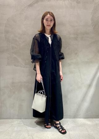夏にはTシャツやタンクトップに、秋にはロングスリーブTシャツ合わせで、さらっとワンピースとしての着用がおすすめ。足元には、ボリューム感のあるサンダルなどを合わせるのが好バランス。逆開ファスナーを下から開けて着用する場合は、デニムパンツ合わせが素敵なのでぜひ。