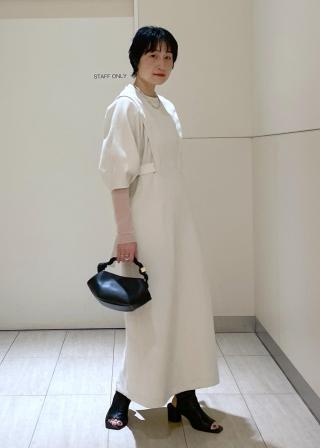 シューズや小物次第でカジュアルにも、上品にも着用出来るワンピース。個性的なバッグやスニーカーとの合わせがおすすめ。