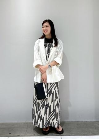 大きめな幾何学柄を凹凸感のあるジャカードで生産したADAM ET ROPE'のオリジナル素材。太めの糸で表現した柄が雰囲気のある差別化素材。