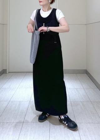 ワンピース:サラッとした肌触りの強撚のフライス素材を使用。程よい肉感で身体のラインをひろいにくく、肌離れの良い素材。