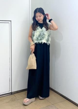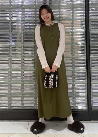 背中の開きも涼しくて、そのままでもTシャツやカーディガンを合わせても、雰囲気が変わって着やすいワンピースです。
