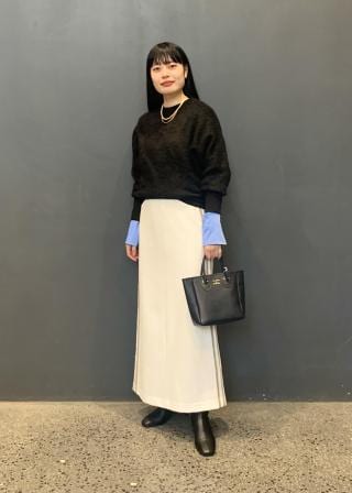 ラインテープが映えるよう、ロングスリーブTシャツやタートルネックのハイゲージニットとの合わせをぜひ。MA-1やキルティングブルゾンなどのアウターを羽織って、スポーティーなカジュアルスタイルを楽しむのもおすすめ。ニットやスウェットを上から被るように着て、スカート感覚で取り入れるスタイルも楽しんで。