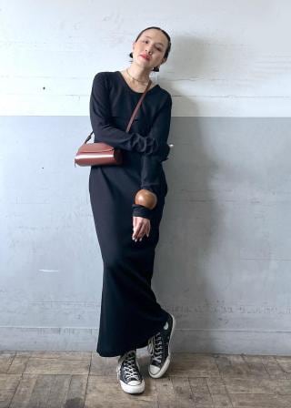 ワンピース:ショート丈トップスの中にも外にも着用できる、適度な身幅から流れるようなストンとしたIラインシルエットのタンクトップ型ワンピース。