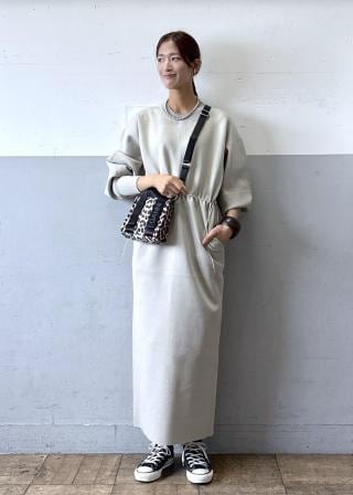 ボディラインも拾いにくく、ストレッチ性もあるので楽チンなワンピースです!