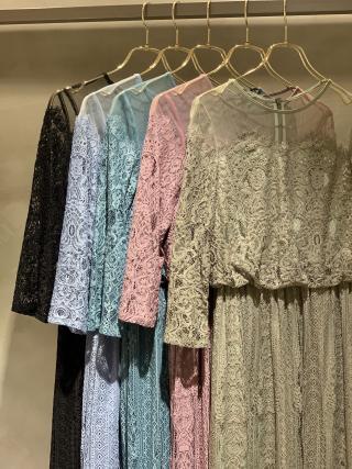 1枚のパネルレースで作られた、贅沢なロングワンピース。胸元はすっきりとしたシンプルなチュールをに、パネルレースを大胆に使用したシアー感を楽しめる1着。ウエストはゴム仕様なので、華やかな見え方とは対照的に着心地は快適です。大胆なデザインは、パーティーシーンや結婚式などにも華を添えてくれます。スタイリング次第で、ドレスアップにも普段使いにも着こなせます。1枚着でパーティー仕様に、デニムなどボトムをレイヤードして普段使いに、着こなしの幅の広さも注目○。