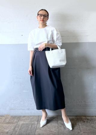 白ブラウス×黒スカートの組み合わせと、薄いベージュ×ベージュのワントーンの2色展開。