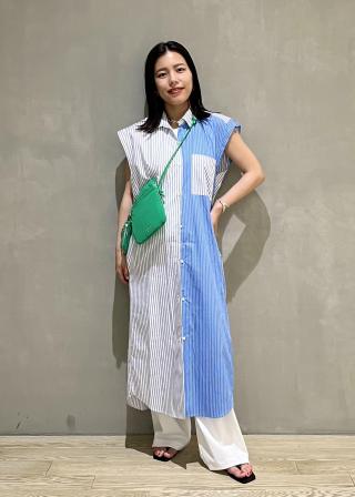 ・バイカラーが映える、ノースリーブ型のシャツワンピース