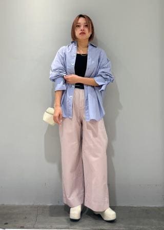 ワイドシルエットのチノ素材のパンツは、カジュアルなスタイリングはもちろん、ゆるっと綺麗に穿いていただけます。