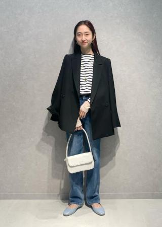 ハイライズシルエットで脚長効果があるので、Tシャツやブラウスをインしたスタイリングにも◎