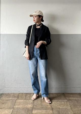 色、ハイウェストで太すぎず細すぎずのシルエット、ブラウス合わせもロンT合わせも、またニット、ジャケット、ワンピースの下に履いたり…色々と使えるデニムです。
