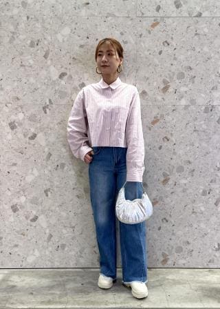 こちらは1のS相当を履いて腰・ヒップジャスト。股上は浅めです。