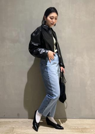 ルーズなサイズ感のトップスはもちろん、トレンドのクロップド丈のトップスを合わせたスタイリングもおすすめです。