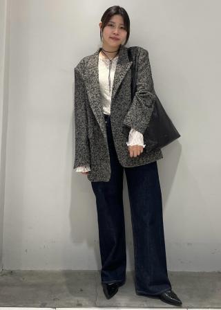 メンズライクなシルエットですが、ニットや綺麗めなジャケットなど、上品なアイテムとも相性抜群。