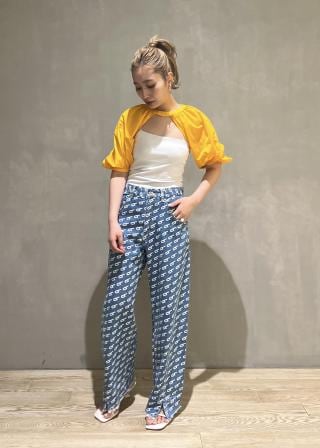 【着用感】ハイウエストでも腰履きでも履ける設計とカーブのかかったシルエット、裾のスリット等今の気分にピッタリなデニムです!1本あれば今年っぽいスタイリングになりますよ!とてもオススメです!