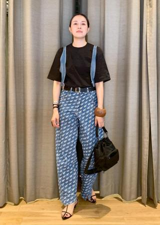 【着用感】ハイウエストでも腰履きでも履ける設計とカーブのかかったシルエット、裾のスリット等今の気分にピッタリなデニムです!1本あれば今年っぽいスタイリングになりますよ!とてもオススメです!