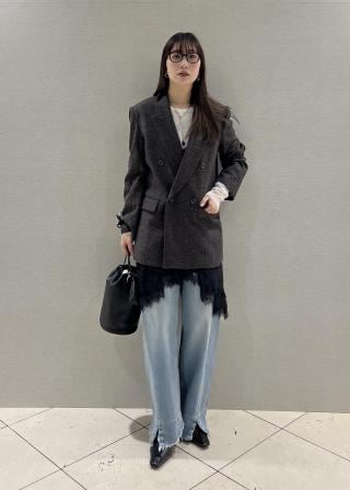 ワイドストレートデニムとして、どんなトップスに合わせても好バランスなので、いろいろなバランスを楽しんで。