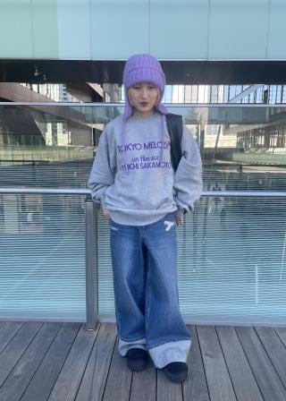 ストンとストレートに落ちる直線的なラインが魅力的なルーズデニム。