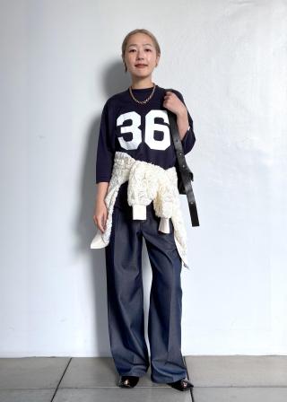 スラックスの雰囲気とデニムパンツの雰囲気を併せ持った一着。