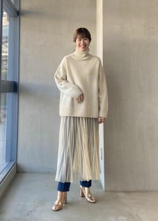 シーズンレスに使える厚手の12.5OZデニム素材。ストレッチが入っていない生地の方が身体のラインを拾いにくく、体型にカバーになってくれます。今季オススメの黒×黒のブラックデニム、インディゴ×生成りのインディゴデニムの2色展開です。