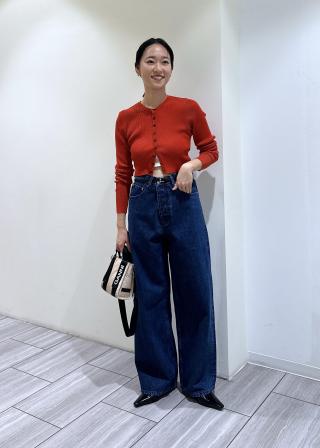 同コラボコレクションのデニムトップ、デニムジャケットとのスタイリングがおすすめですが、シンプルなTシャツやニット、ジャケットを合わせたミニマルなスタイルも素敵。