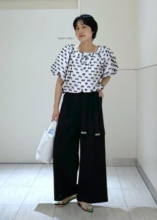 春夏はTシャツなどカジュアルトップスとあわせるのがおすすめ。