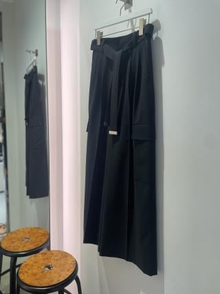 サイドのポケットが魅力的なワークパンツ。カジュアルになりすぎず、大人っぽくモードに着用可能。程よくワイドなシルエットや、太めのウエストベルトがポイント。金属部分がポイントのウエストベルトは、一つ結びにして垂らしたり、片結びして着用するのがおすすめ。