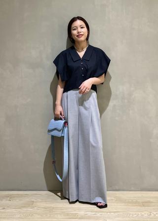 さらっと軽く、レーヨンも入っていてとろみのあるワイドパンツなので、女性らしい柔らかさのある雰囲気でお召しいただけます。