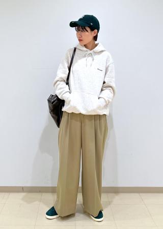 シンプルながらに今っぽさのある定番スラックスは、デザイントップスにもベーシックなロンTEEにも合わせやすいアイテム。
