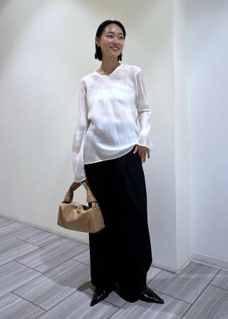 ウール特有のドレープ感と落ち感が美しいシルエットを引き立てる1着。