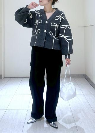 スラックスは、裾に向かってほんのりテーパードさせたシルエットで美脚効果あり。