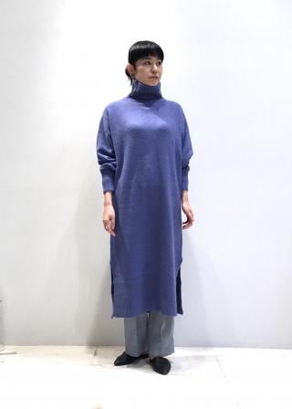 また、タートルポンチョワンピースのような丈の長いトップスとのレイヤードにも使えるデザイン。