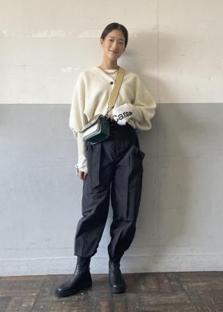 脚を細く見せることにこだわったボリュームソールブーツなので、スカートスタイルの足元やワンピーススタイルに、外しで取り入れるのがおすすめ。ニットワンピースなどの足元に合わせても素敵なのでぜひ。