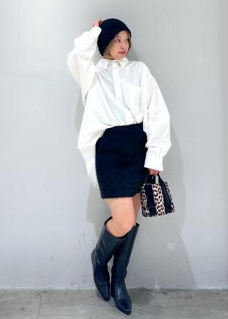 ワイドシルエットで、ひざ下をストンとまっすぐに見せる美脚効果の期待できるロングブーツ。