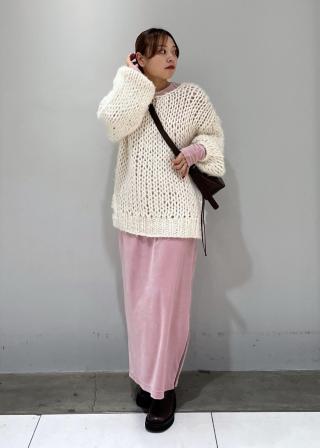 脚を細く見せることにこだわったボリュームソールブーツなので、スカートスタイルの足元やワンピーススタイルに、外しで取り入れるのがおすすめ。