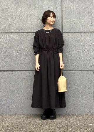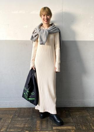 脚を細く見せることにこだわったボリュームソールブーツなので、スカートスタイルの足元やワンピーススタイルに、外しで取り入れるのが今っぽいのでぜひ。春先には、シャツワンピースなどの足元にもおすすめ。