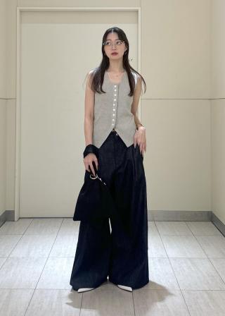 ルーズなシルエットに、ワイドな裾から履き口のカッティングデザインを覗かせるバランスも素敵。