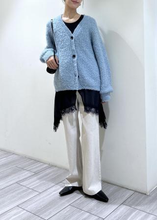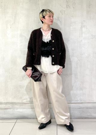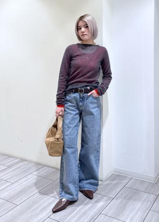 ワイドで長め丈のパンツから長めのトゥを見せるスタイリングがおすすめ。