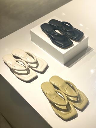 パンツスタイルに合わせ、足元に抜け感を出すのがおすすめ。シャツなどを着たクリーンなスタイリングのはずしアイテムとしても◎