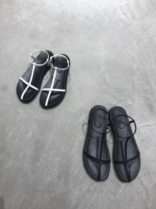 足元をすっきりと華奢に見せてくれるストラップとスポーティーなソールとの組み合わせが新鮮なサンダル。ソフトで足当たりの良いストラップは、足首部分をシャーリングゴム仕様にすることで、歩行時にしっかりとホールドしながらも痛みを軽減。金具が無いことで、着脱がスムーズなのもポイント。軽くてとても返りの良いモチモチとしたフットベットソールで、足裏との一体感も心地よく、安心感のある履き心地が魅力。