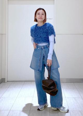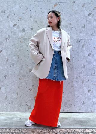 適度にヴィンテージ感もあってスウェット系のトップスと合わせるだけでもオシャレにきまります。今はシンプルにスカートとして着用してますが、デニムのレイヤードコーデにも合わせてみたいです!