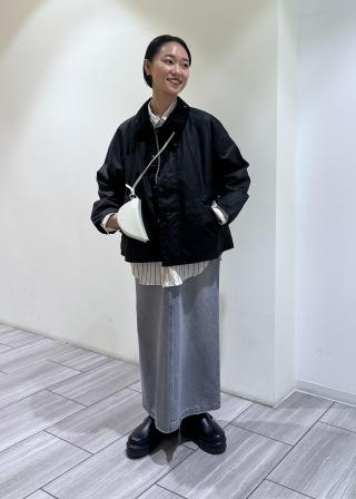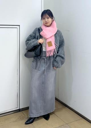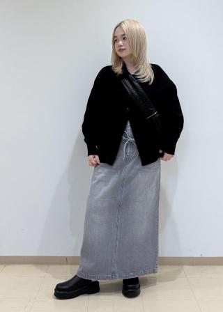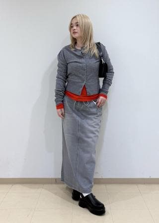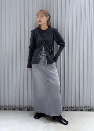 ユーズド感のあるやや柔らかなデニム素材に、力を抜いたような崩しのあるディテールを施すことで重たくなりがちなデニムスカートに新鮮さをプラス。