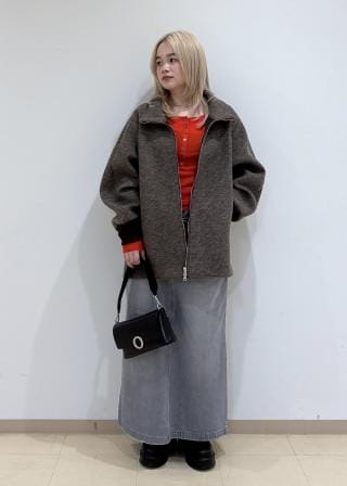 フロントジップ仕様で程よいカジュアルさに加え、付属の紐をラフに垂らすことで、軽やかな抜け感のあるアイテム。