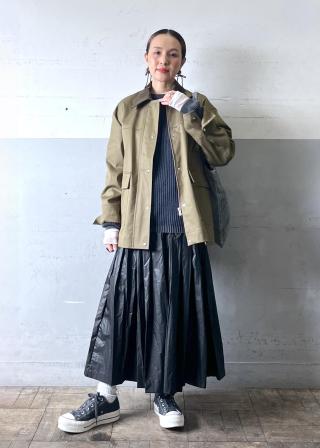 存在感のあるスカートなのでシンプルなトップスと合わせるだけでもこなれ感が出ます