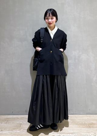 存在感のあるスカートなのでシンプルなトップスと合わせるだけでもこなれ感が出ます