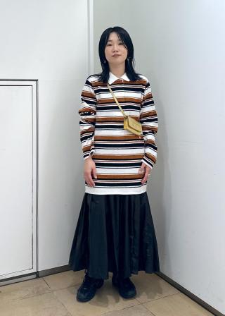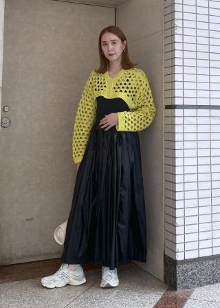 いろんな素材のトップスと合わせやすいので、ロペのリバーシブルニット(品番GMM14050)や、スウェットに合わせることが多い。