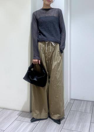 襟ぐりの開いたデザインやシアーアイテム、カーディガンやジャケットのインナーになど着回し抜群。真夏には、1枚で着てヘルシーなスタイリングもぜひ。